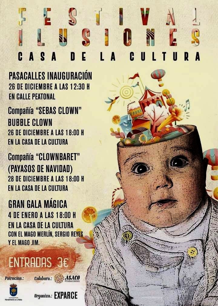 Un espectáculo de burbujas, otro de payasos clásicos y una gala mágica componen el cartel del Festival Ilusiones, que traslada su actividad del Teatro del ... Mercado a la casa de cultura, pero que mantiene la misma filosofía con la que surgió hace tres años. Aprovechar las vacaciones navideñas para ofrecer una alternativa artística de ocio para toda la familia.