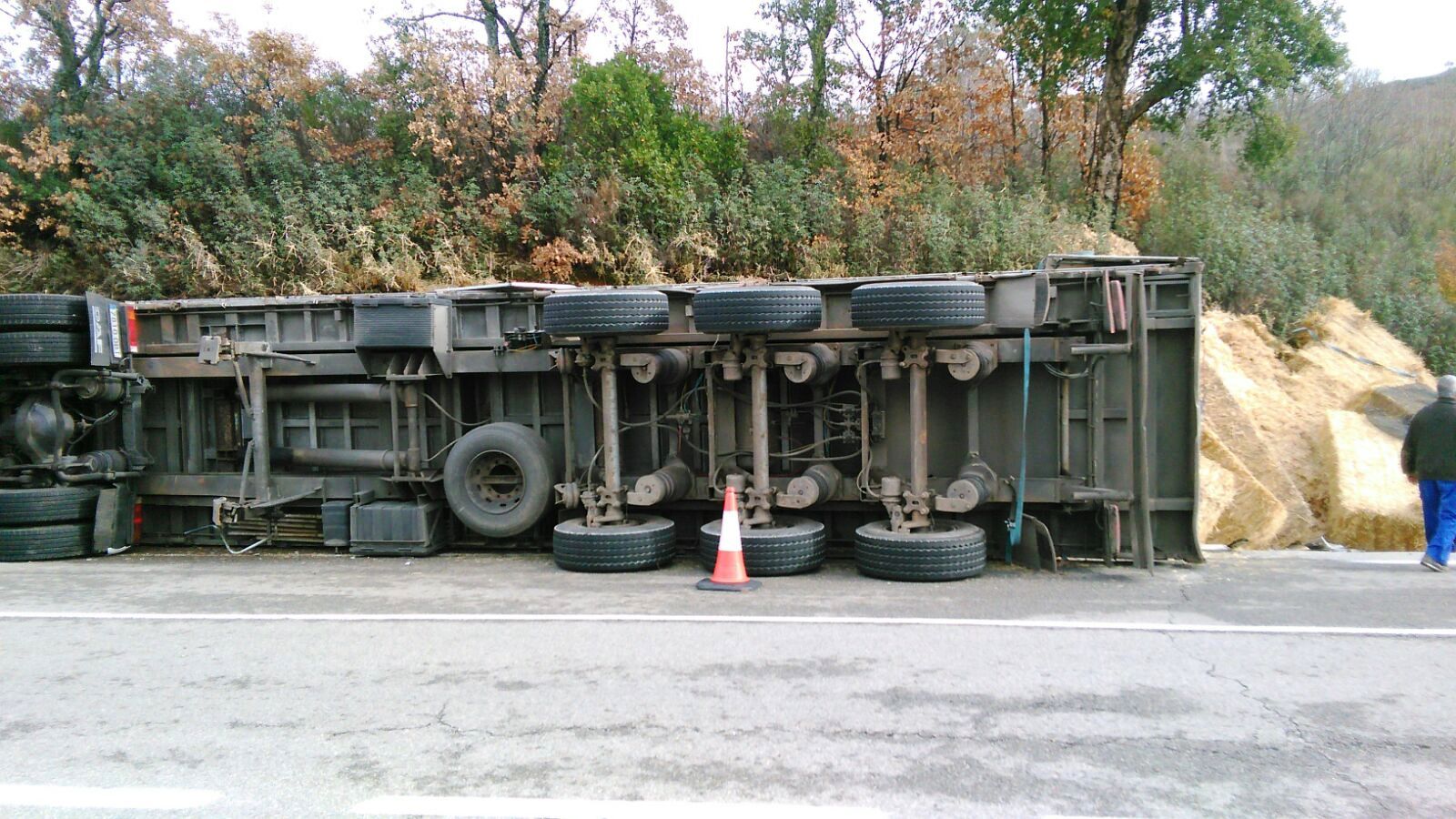 Heridos un hombre y un menor al volcar un tráiler en Castañar de Ibor