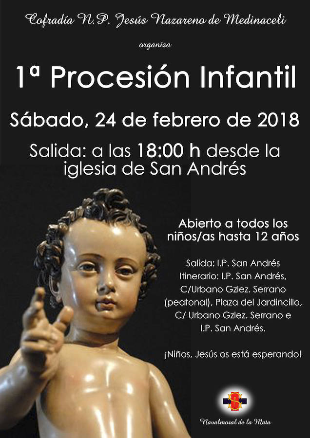 La cofradía de Jesús Nazareno de Medinaceli celebrará en la tarde del sábado la primera procesión infantil, dentro del solemne novenario que iniciará en la ... tarde del jueves y finalizará el 2 de marzo.