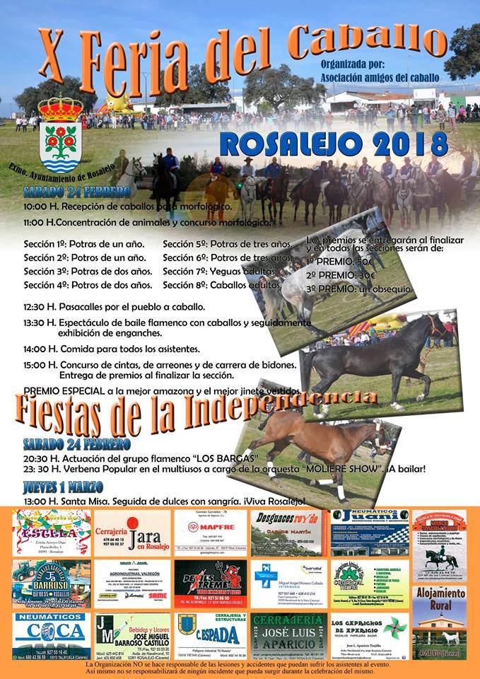 Rosalejo celebrará el próximo 1 de marzo una nueva edición de las fiestas de la Independencia, que conmemora desde que dejó de depender del Ayuntamiento ... de Talayuela. No obstante el grueso de las actividades se desarrollarán este sábado alrededor de la X Feria del Caballo, que reunirá a numerosos jinetes, amazonas y aficionados de la comarca.