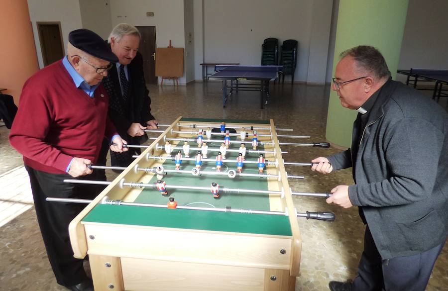 David González y José Montesino, los párrocos de San Andrés, jugando al futbolín. Esa es la simpática imagen que encontramos al visitar el salón de ... juegos para niños y adolescentes que se ha creado en los salones parroquiales próximos a la residencia María de los Ángeles Bujanda. Un centro que según José Montesino surge de una necesidad, proporcionando un sitio en el que puedan divertirse sanamente.