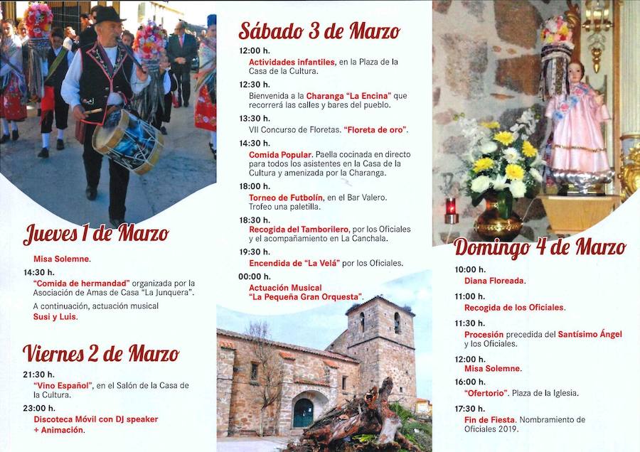 El programa se cerrará el domingo con una diana floreada, la recogida de los Oficiales, procesión con el Santísimo Ángel y los Oficiales, misa solemne, ofertorio en la plaza de la iglesia y fin de fiesta con el nombramiento de los Oficiales del 2019.