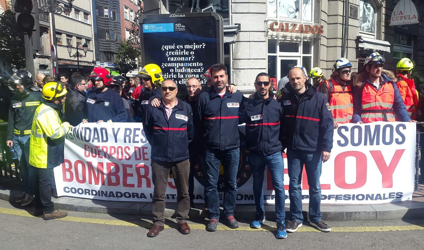 "A pesar de los kilómetros teníamos que estar, porque esto nos afecta a todos", señalaron a HOY los bomberos moralos presentes en Oviedo.