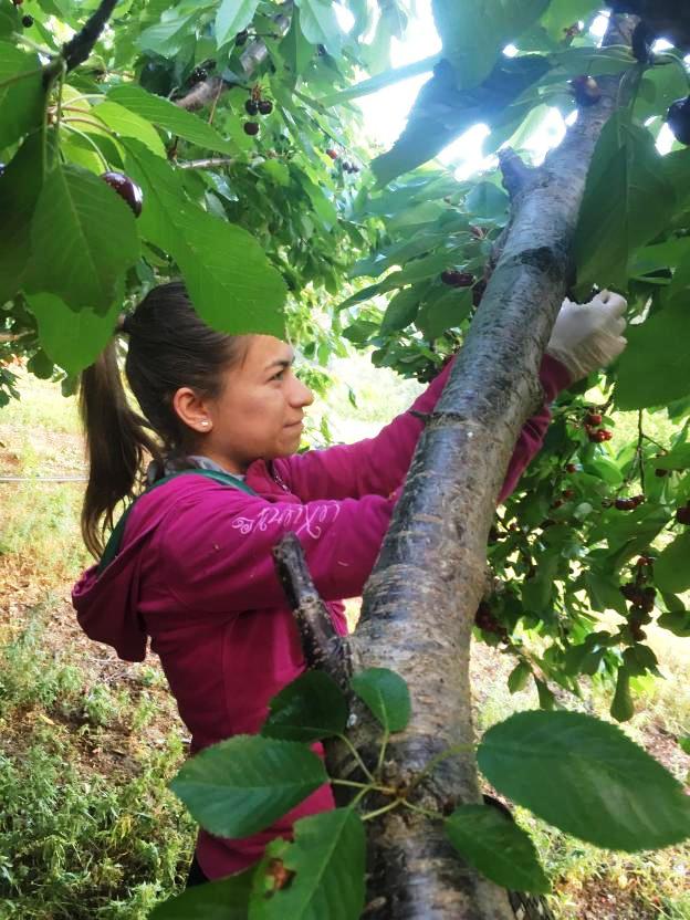 Encontramos a Lucía Sánchez recolectando cereza en la comarca de la Vera. ¿Cuanto tiempo lleva trabajando en el campo? y ¿cómo ha llegado a hacerlo?