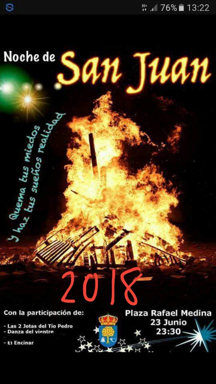 El sábado la actividad se trasladará a la plaza de Rafael Medina, que es el marco elegido por el grupo de coros y danzas El Encinar para vivir la noche de San Juan. El Encinar comparte cartel con Las dos jotas del tío Pedro y el grupo de la danza del vientre.