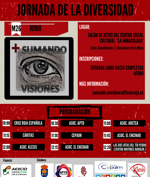 Cruz Roja celebra mañana las jornadas de diversidad “Sumando Valores” en el salón de actos del centro socio-cultural La Inmaculada (Las Monjas).