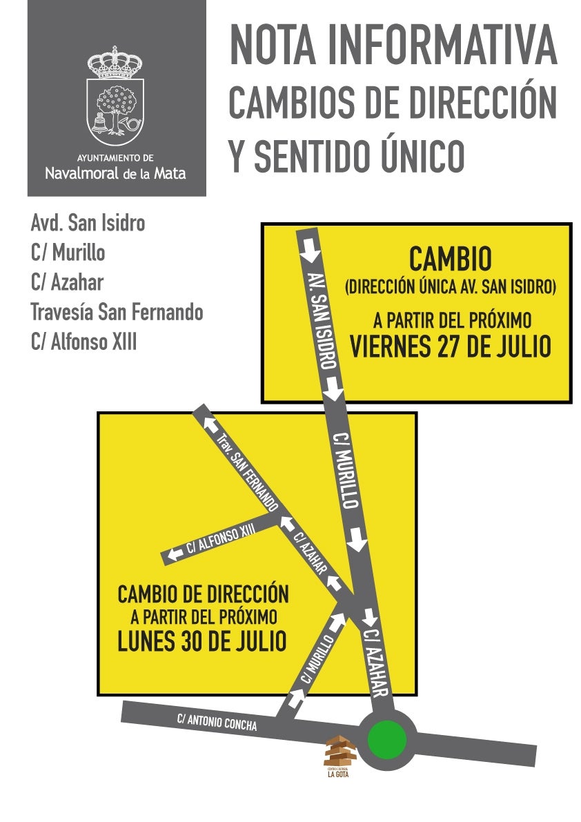 La primera modificación comenzará a producir efectos el viernes 27 afectando a la avenida de San Isidro, que se convertirá en vía de sentido único, dirección centro urbano. Esto, a su vez, permitirá ampliar las plazas de estacionamiento, tal y como determina el estudio elaborado por la Universidad de Extremadura.