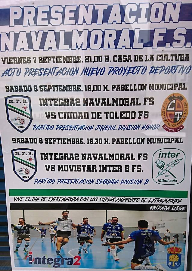 Navalmoral FS celebrará el Día de Extremadura como mejor sabe, jugando a fútbol-sala y haciendo disfrutar a sus aficionados. Será en la tarde del sábado en el pabellón polideportivo, en la presentación del equipo juvenil de División de Honor y el que militará una temporada más en Segunda División B.