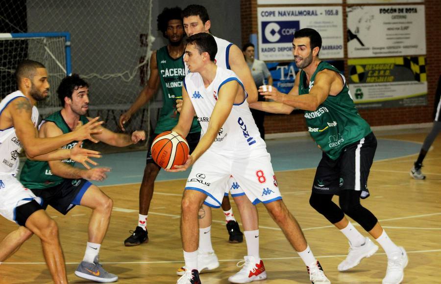 El Cáceres Patrimonio tampoco pudo con el CBC Valladolid en el partido amistoso que jugó el martes en el pabellón polideportivo de Navalmoral. Tras perder la Copa de Extremadura en Plasencia, el conjunto de Ñete Bohigas caía 82-88 ante un equipo que será rival en LEB Oro. Los verdinegros mejoraron su defensa en el último cuarto, pero no les sirvió para remontar un partido que salvo el primer cuarto (14-13) siempre fueron a remolque.