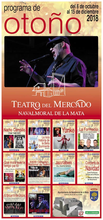 La siguiente cita de octubre, el jueves 11, será 'Qué mala suerte tengo pa tó', la nueva comedia de Manolo Medina y Javier Vallespín, los creadores de 'Dos hombres solos sin punto ni ná'. El sábado 20 el protagonismo para la Coral Amigos de la Música en el concierto que celebrará su vigésimo aniversario, y en el que compartirá cartel como la coral polifónica O Chopo, de Pontevedra; el coro de cámara 'Vía de la Plata', de Almendralejo, y la coral La Luzena, de Arroyo de la Luz.