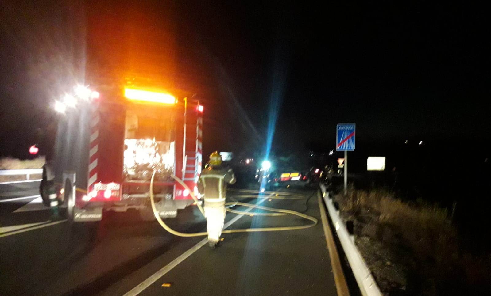 Se quema el remolque de un tráiler en la autovía de Extremadura