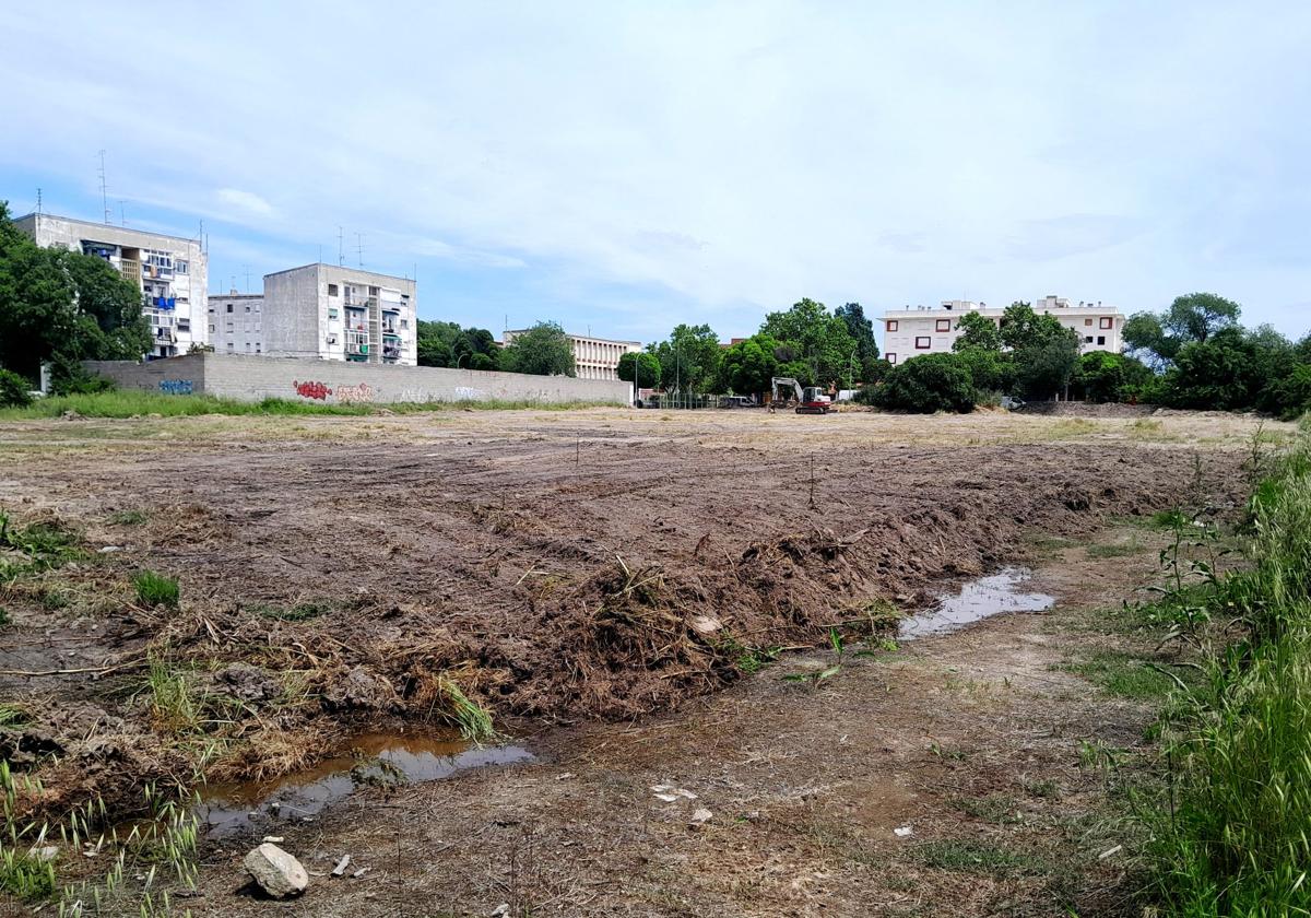 La explanada junto a las viviendas del barrio de la Paz que muestra la fotografía, de unos 7.000 metros cuadrados y cedida por su propietario, se va a convertir en un aparcamiento provisional habilitado por el Ayuntamiento mientras se prolonguen las obras del tren en marcha, consciente de la evidente necesidad de plazas para estacionar en el casco urbano.