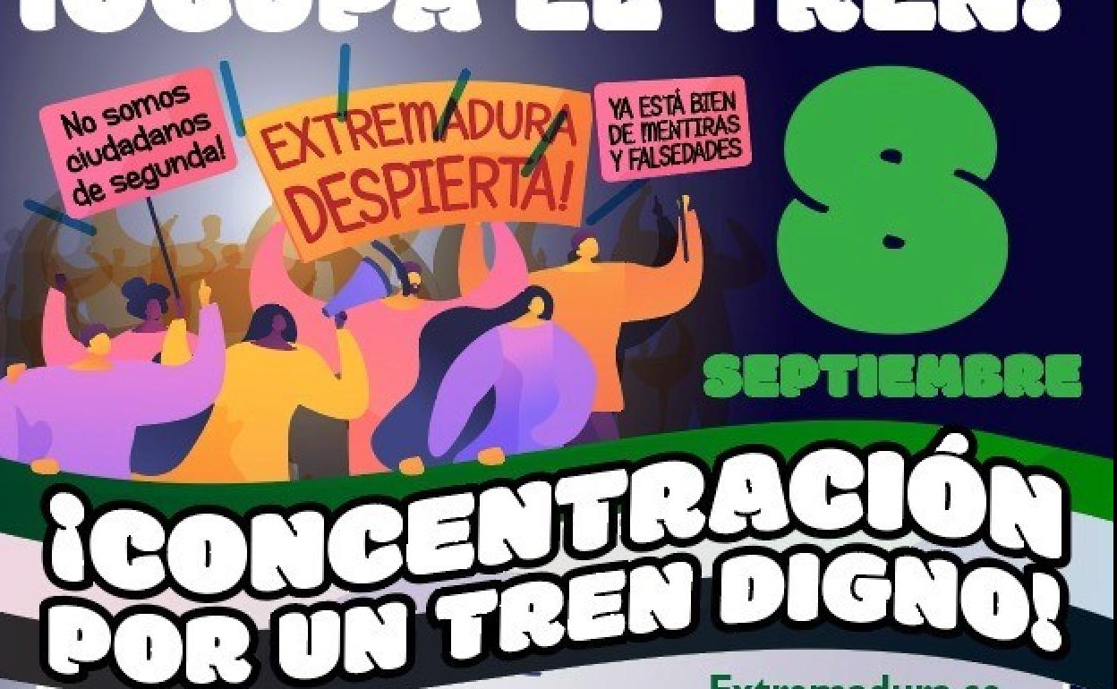 '¡Ocupa el tren!', 'No somos ciudadanos de segunda', '¡Extremadura despierta!' o 'Ya está bien de mentiras y falsedades' son los lemas que encabezan el ... cartel que anuncia, a la vez que invita a sumarse, la movilización que una veintena de colectivos de la región realizarán en Madrid el 8 de septiembre para reivindicar, una vez más, «el tren digno que necesita».
