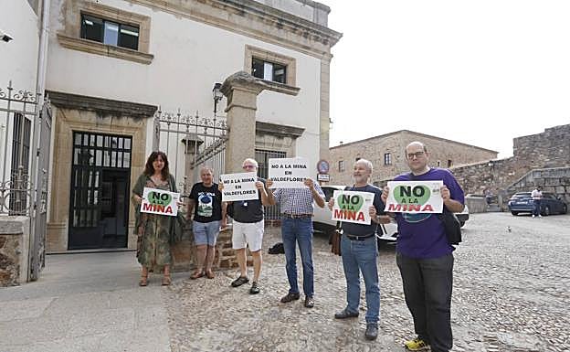 Mini protesta contra la mina en el Ayuntamiento de Cáceres