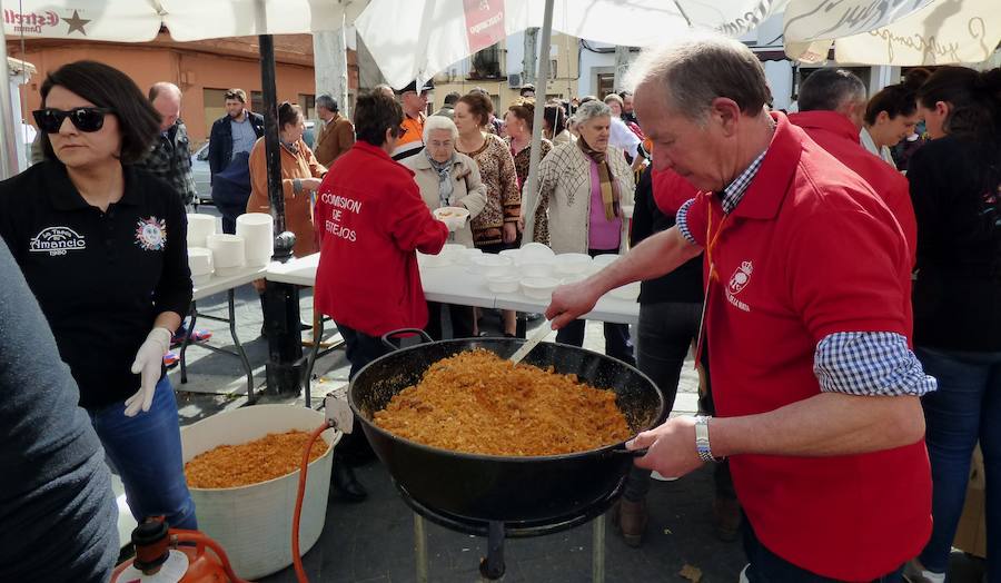 Otra de las citas que registró gran afluencia de público fue la comida popular de la plaza Vieja, donde se repartieron 2.000 raciones de migas con chorizo y panceta y más de 1.500 de limonada.
