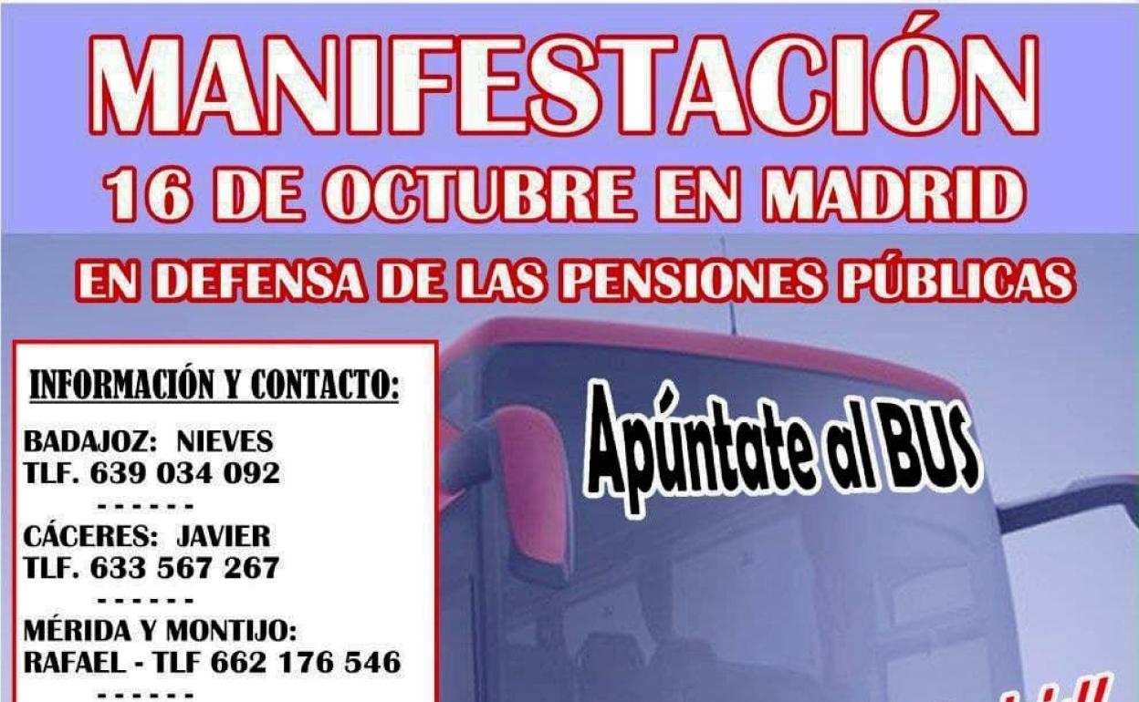Desde Extremadura se fletarán varios autobuses para asistir a la movilización. En concreto desde Badajoz, Cáceres, Mérida-Montijo y Navalmoral-Plasencia-Hervás. Los interesados en desplazarse en éste último pueden reservar su plaza a través teléfono 620 083 980.