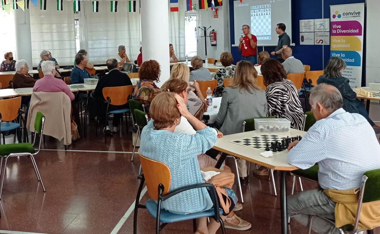 A la ponencia le siguieron sesiones prácticas de iniciación al ajedrez impartidas por Luis Barrera, técnico de Fundación Cepaim, para cerrar la jornada la concejala de Sanidad y Consumo, Malu Martínez.