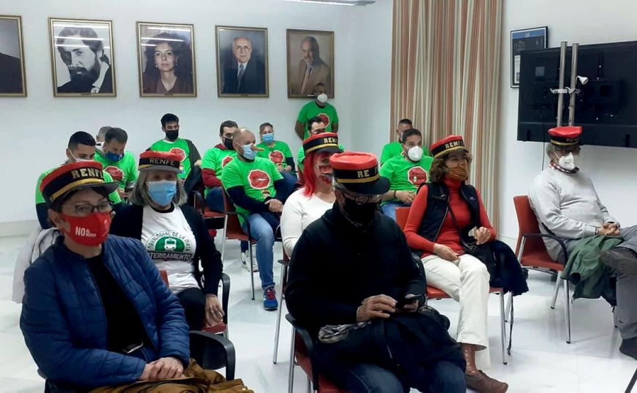 Gorras de ferroviarios y narices de Pinocho volvieron a verse en el pleno que celebró en la noche del jueves la Corporación Municipal. Eso significa que volvieron a estar presentes los integrantes de la plataforma No al Muro y los agentes de la Policía Local para hacer visibles, de nuevo, sus respectivas reivindicaciones: el soterramiento del tren de alta velocidad a su paso por el casco urbano y mejores condiciones laborales.
