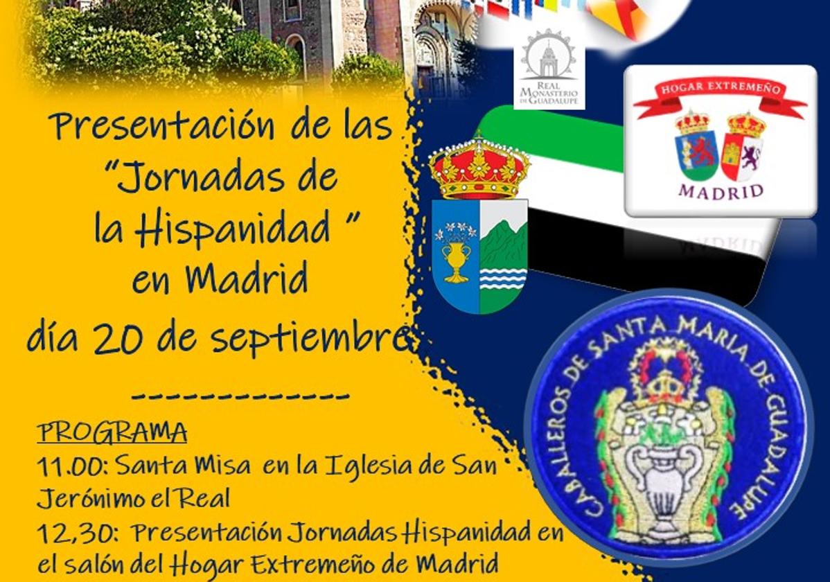 El sábado el protagonismo será para la Virgen de Guadalupe, con la presentación de las Jornadas de la Hispanidad en Madrid. A las 11.00 h. habrá misa en la iglesia de San Jerónimo el Real, para dar a conocer a continuación las jornadas en el salón de actos del Hogar Extremeño y terminar con una comida de hermandad en el restaurante del propio hogar.