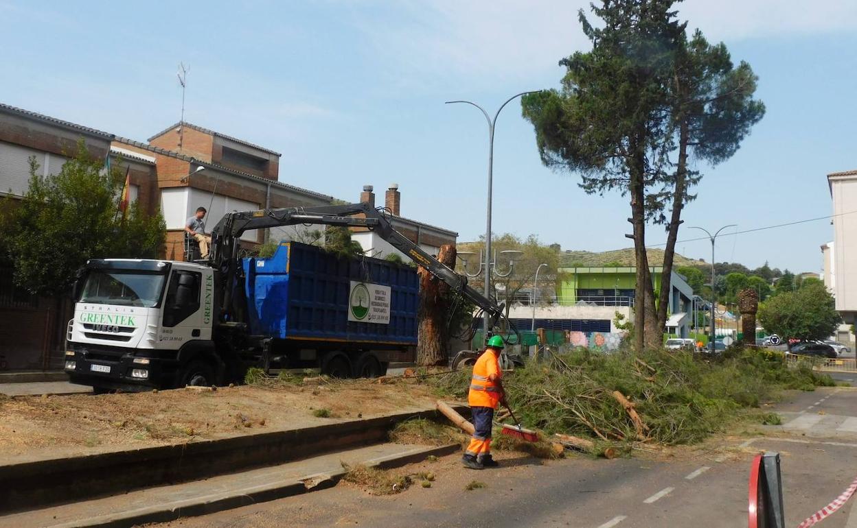 La tala de los árboles se estima que se prolongará una semana y el conjunto de las obras del III Plan Mejora Navalmoral, donde se incluye la remodelación, unos ocho meses, según apuntó el concejal de Agenda Urbana, Juan Máximo Villar, junto a las recién iniciadas obras.