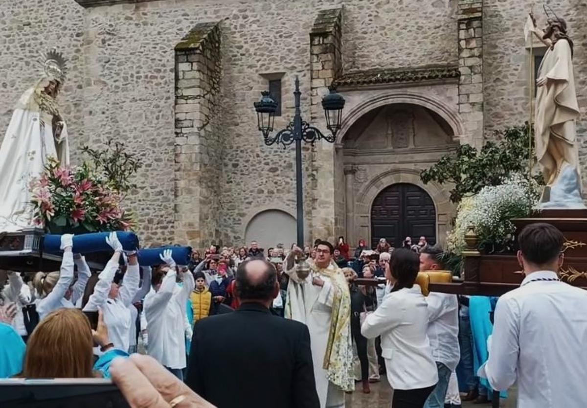 Sin embargo el domingo de Pascua, aunque con un itinerario más corto en torno a la iglesia de San Andrés, sí se pudo disfrutar del Resucitado con su Madre, la Virgen María. Además en el interior del templo se realizaron dos oraciones, una a la Madre y otra al Cristo Resucitado, al tiempo que la Banda de Música interpretó marchas procesionales y el diácono, que presidió la procesión y el acto en el templo, incensaba a la virgen del Rosario y al Resucitado.