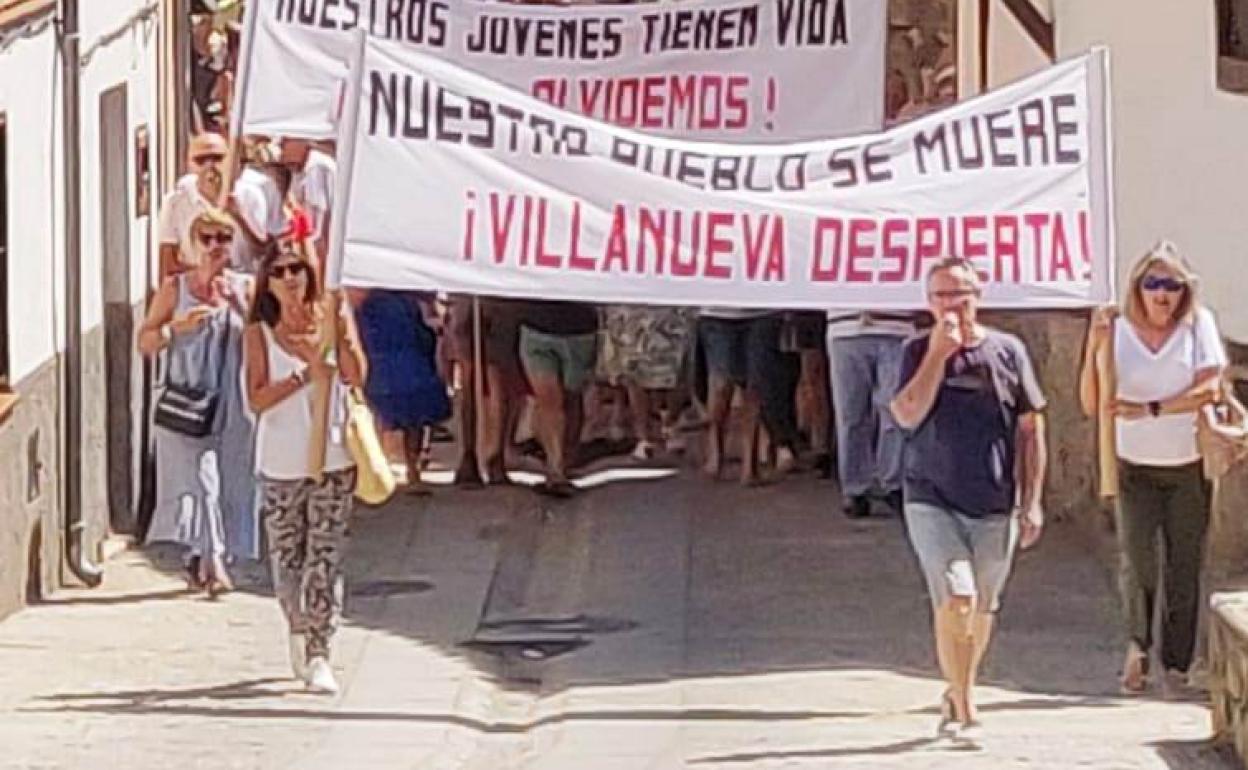 Con pancartas en las que se podía leer «Nuestro pueblo se muere, Villanueva despierta» o «Nuestros jóvenes tienen vida. ¡No les olvidemos», decenas de vecinos han querido manifestar su descontento con la gestión municipal. Al frente de la misma está el socialista Antonio Caperote.
