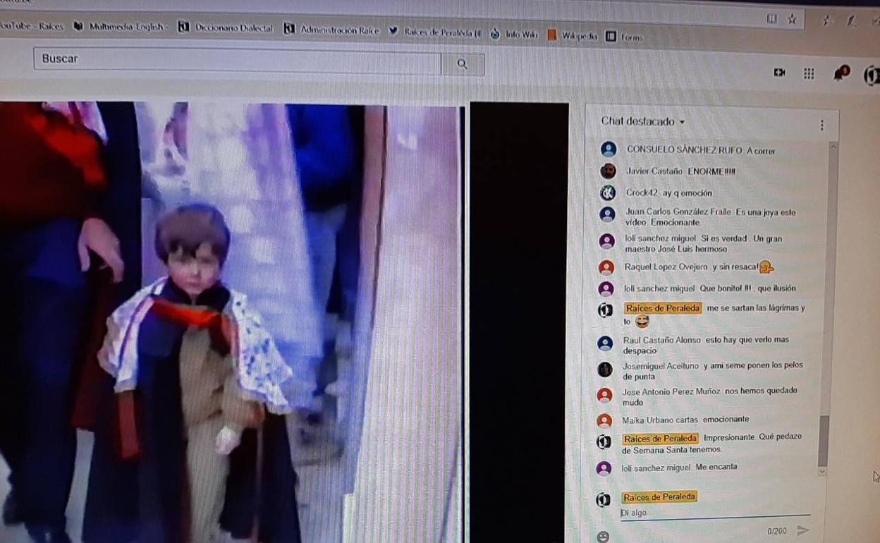 Por nuestra parte nos encargamos de organizar las procesiones, gracias al estupendo recurso de las retransmisiones en directo por YouTube. Cogimos material antiguo y reconstruimos las procesiones y actos de otros años. Funcionó fenomenal, llegamos a los 200 dispositivos conectados simultáneamente y en nuestros cálculos sacamos unas 500 personas viéndolos, pues en cada casa eran varios.