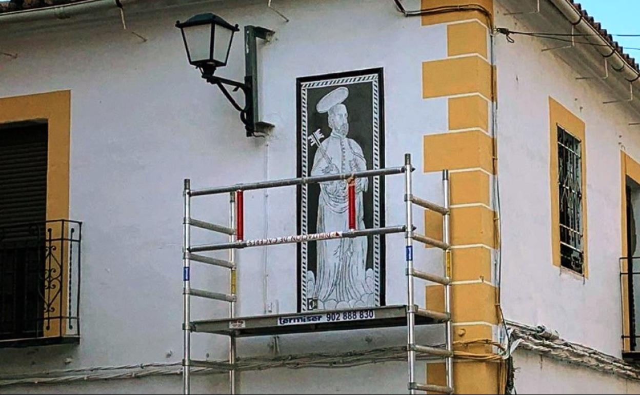 Aquí recuerdan que el retablo esgrafiado en los muros de la iglesia es de difícil acceso al situarse tras el retablo de madera, por lo que consideraron conveniente esta acción con el objetivo de difundir «el mejor retablo esgrafiado del Renacimiento con técnica italiana».