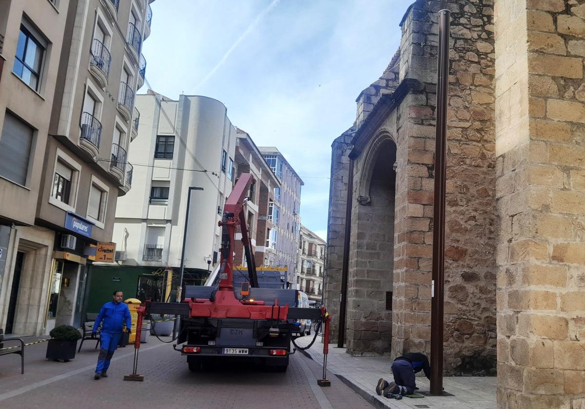 Tal y como se avanzó en su día, los postes metálicos que sustentan algunos de los toldos de sombreado estival de las calles peatonales se han retirado una vez desaparecidos temporalmente los toldos, como los situados frente a la Fundación Concha o los que rodeaban la iglesia de San Andrés. Volverán en un par de meses, junto con los toldos, para dar sombra hasta el otoño.