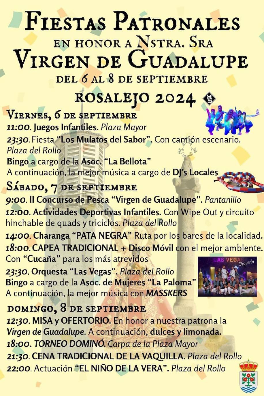 Más de una decena de actos de todo tipo componen la programación organizada por el Ayuntamiento de Rosalejo con motivo de las fiestas patronales en honor a la Virgen de Guadalupe, que se celebrarán entre el viernes y el domingo.