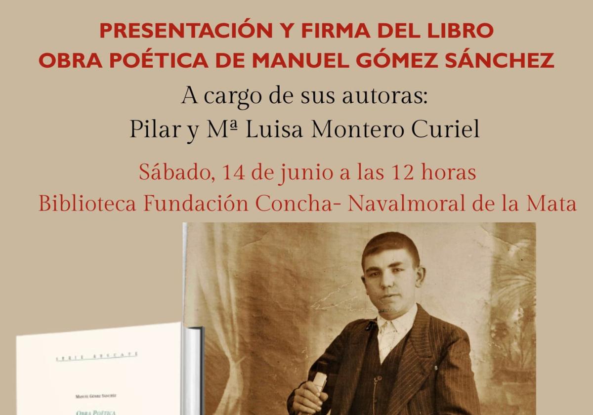 La Fundación Concha acogerá este sábado, a partir de las 12.00 h., la presentación del libro que recopila la obra poética de Manuel Gómez Sánchez, natural de Madroñera, afincado en Trujillo y con familiares en Navalmoral. Murió fusilado en 1936, dejando un extenso trabajo literario.