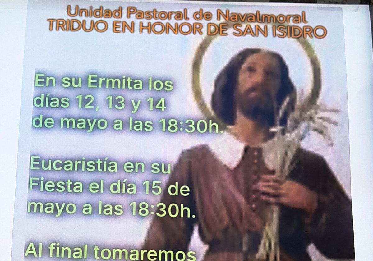 Tras tres días de triduo en su honor, en la tarde del jueves 15 se celebrará el acto central de las modestas fiestas de San Isidro. Será con una eucaristía a partir de las 18,30 h., en la que el grupo Las dos jotas del tío Pedro cantará la misa extremeña, seguida de subasta y reparto de dulces y refrescos, invitando a acercarse a todos los vecinos y vecinas que lo deseen.