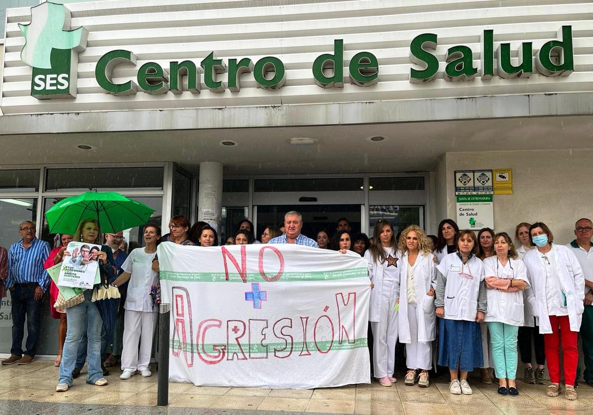 Un grupo de sanitarios pertenecientes al centro de salud se concentraron al mediodía del jueves a las puertas del mismo para mostrar su rechazo, de nuevo, a las actitudes agresivas que se repiten hacia ellos cada vez con más frecuencia y exigir un servicio de seguridad que les proteja de este tipo de comportamientos.