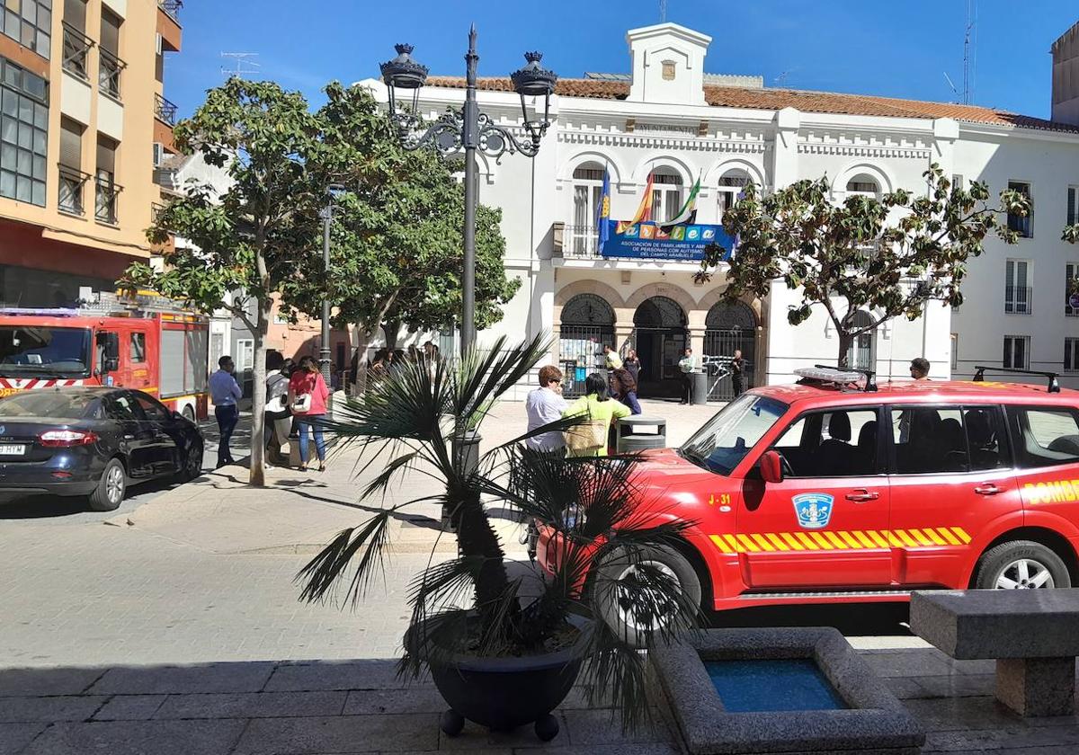 Vecinos y visitantes se han visto sorprendidos a mediodía del martes por un despliegue de medios poco habitual en el centro del casco urbano. Se debía a un simulacro de incendio en el Ayuntamiento que movilizó a agentes de la Policía Local, a voluntarios de Protección Civil y a bomberos del SEPEI para rescatar a varios trabajadores atrapados en sus dependencias por el humo 'acumulado' en el interior de la Casa Consistorial.