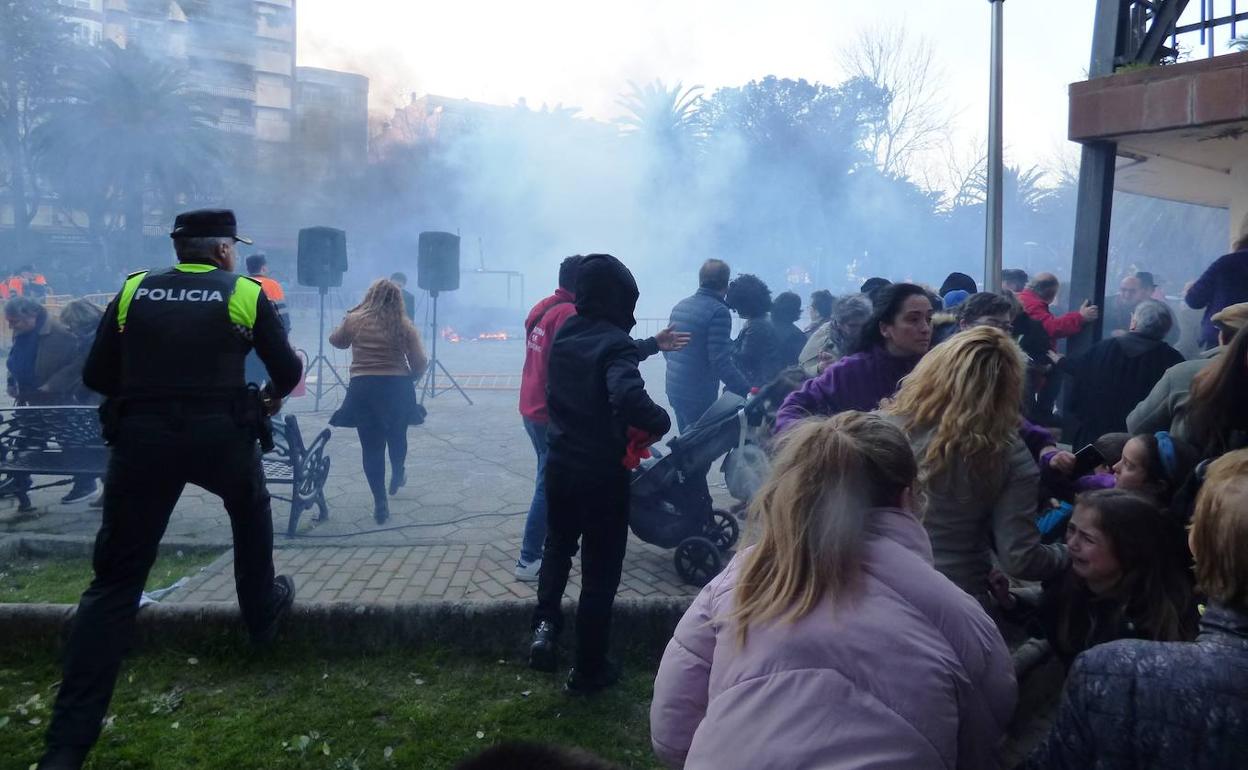 La quema de la sardina que despide cada año el Carnaval terminó con un susto para las decenas de personas que se encontraban en el parque municipal, al reventarse una caja que contenía material pirotécnico y salir disparado en horizontal, a ras de suelo, en lugar de hacerlo en vertical, provocando una auténtica estampida en medio de las explosiones, el humo, los gritos y algún llanto.
