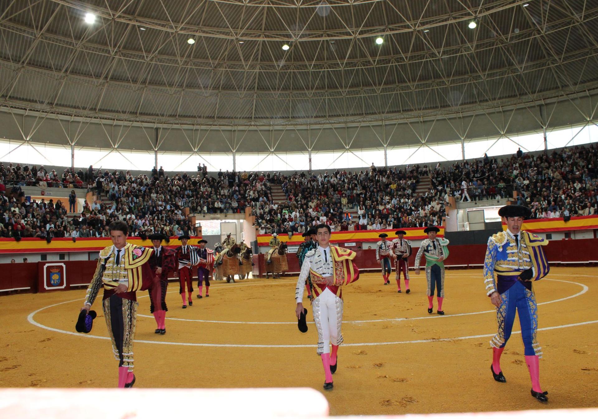 El edificio multiusos, convertido el domingo en plaza de toros, acogía una tarde de total expectación gracias a un cartel conformado por Talavante, Roca Rey ... y Marco Pérez, que se enfrentaban a toros de Alcurrucén.