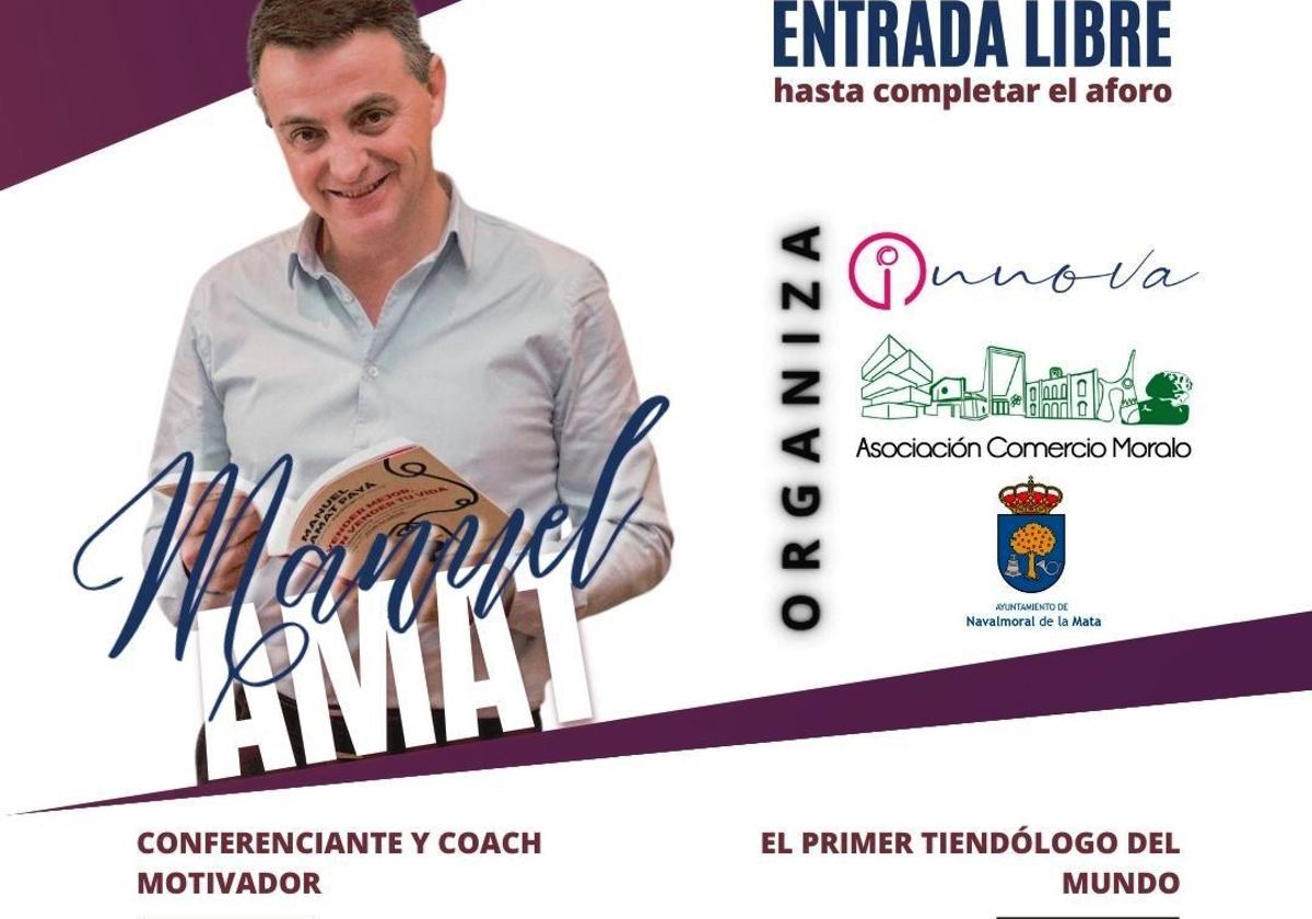 La Asociación Comercio Moralo, en colaboración con el Ayuntamiento y la consultora Innova, organiza una charla gratuita impartida por Manuel Amat, conocido como el primer 'tiendólogo' del mundo. El evento, titulado 'Vender mejor sin vender tu vlda', tendrá lugar a partir de las 20.30 h. del jueves 14 en el Teatro del Mercado, dirigido a empresarios y profesionales locales.