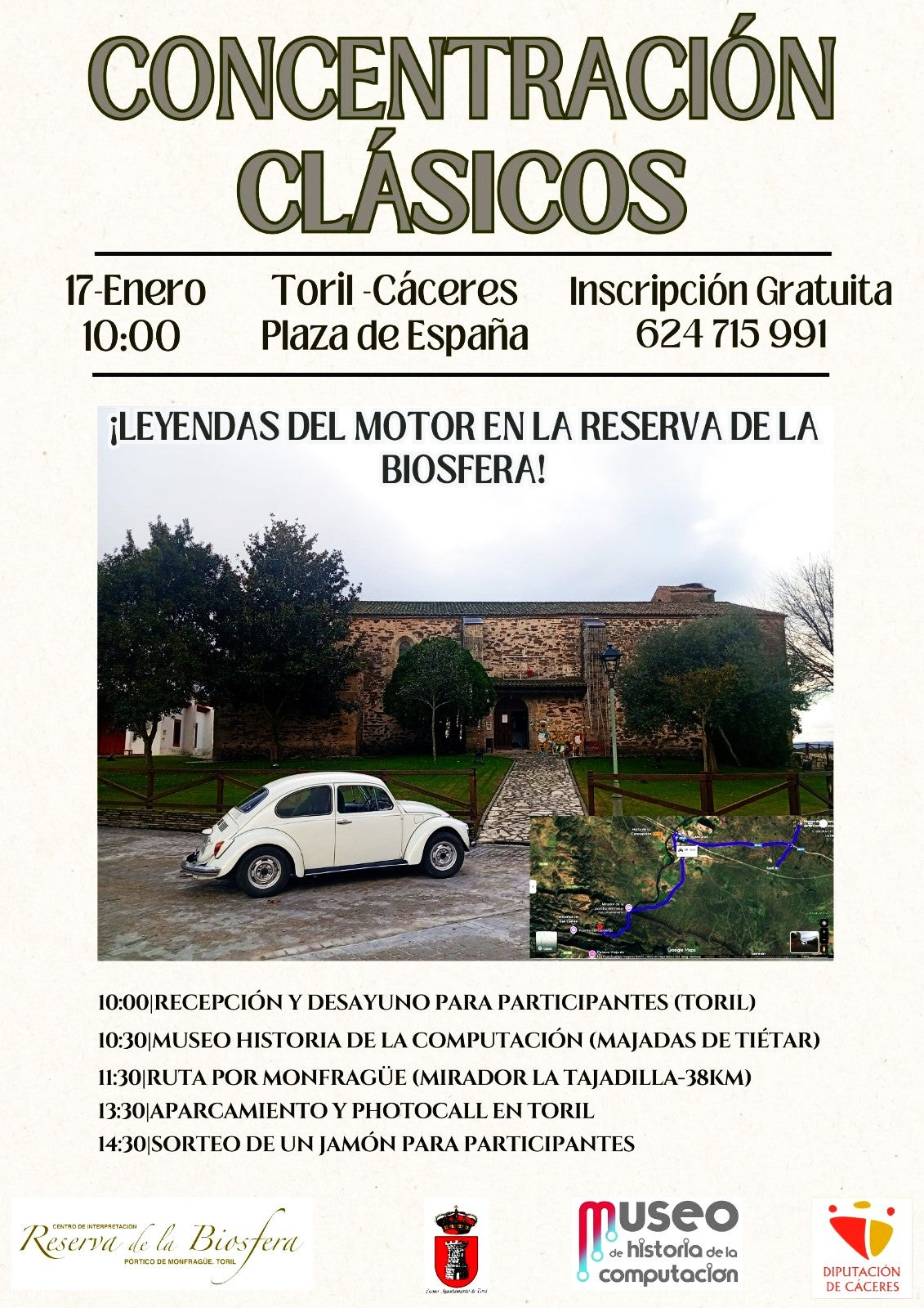 Así anuncian desde el Centro de Interpretación Pórtico de Monfragüe la Concentración Clásicos que tendrá lugar este sábado en Toril como anticipo de las cercanas y multitudinarias fiestas de San Blas.