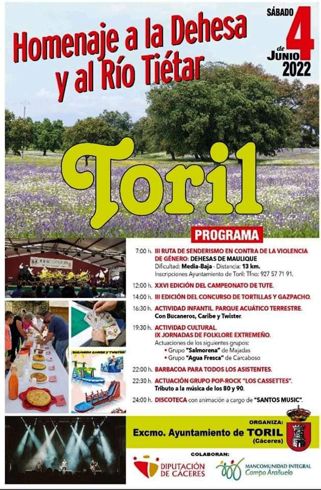 La pequeña población de Toril celebrará el sábado, con distintas actividades lúdicas, una nueva edición de su fiesta en homenaje a la dehesa y al ... río Tiétar. De hecho en su término municipal tiene algunas de las mejores dehesas del Parque Nacional de Monfragüe y su entorno.