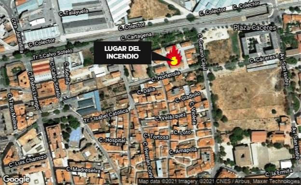 Una vecina de Navalmoral de 78 años resultó afectada este martes por inhalación de humo tras el incendio de una vivienda situada en el número 6 de la calle Juan Ramón Jiménez.