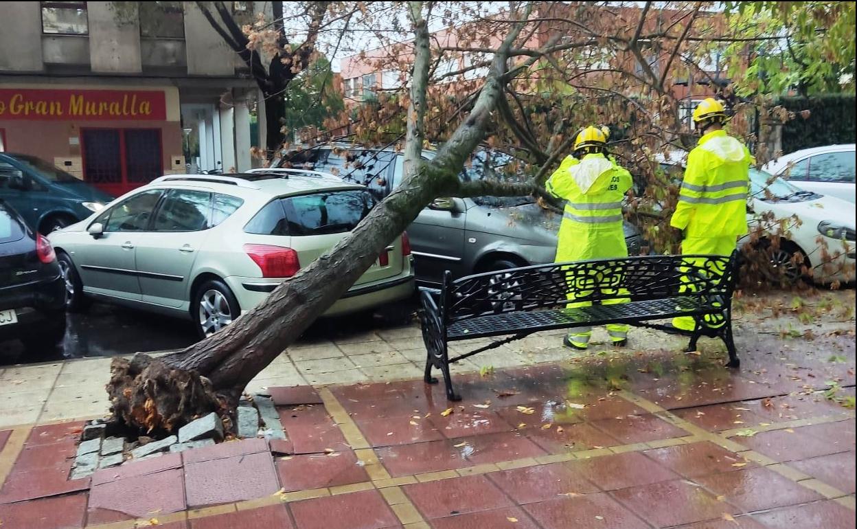 Una tromba de agua, con fuerte viento, derriba árboles y ramas