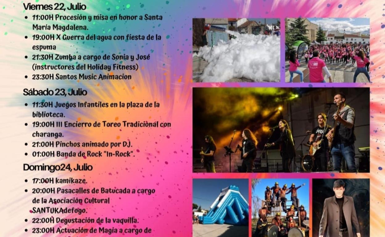Valdehúncar celebra hasta el domingo las fiestas de La Magdalena, que han empezado en la mañana del viernes con procesión y misa en su honor. ... El programa de actividades continuará por la tarde con guerra del agua y fiesta de la espuma y por la noche con zumba a cargo del Holiday Fitness y animación con Santos Music.