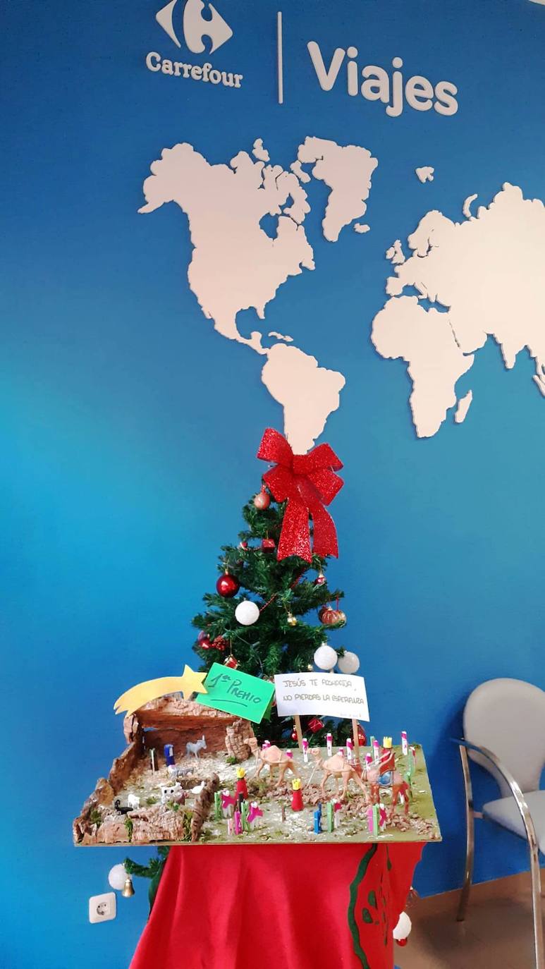 El primer premio, patrocinado por Viajes Carrefour Navalmoral y dotado con cuatro entradas al Parque Warner de Madrid, está elaborado con diferentes materiales, llamando la atención muchas pinzas con lazos rosas, a modo de marcha hacia el establo. En una pancarta se lee :No estás sola, Jesús te acompaña. Un mensaje de aliento y esperanza a todas las mujeres que están padeciendo la enfermedad del cáncer.