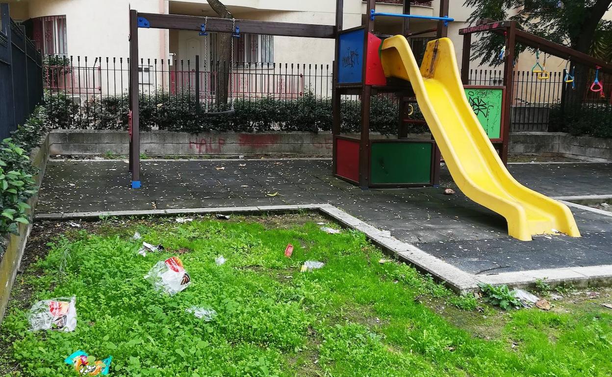«Con heces de perros, cristales dentro y fuera de la zona infantil, el agua de la fuente amarilla y sucia, con palomas muertas, hierbas y matorrales dentro de la zona de juego, colillas de todo tipo, columpios rotos, suelo levantado o árboles infectados por pulgones», se dice.