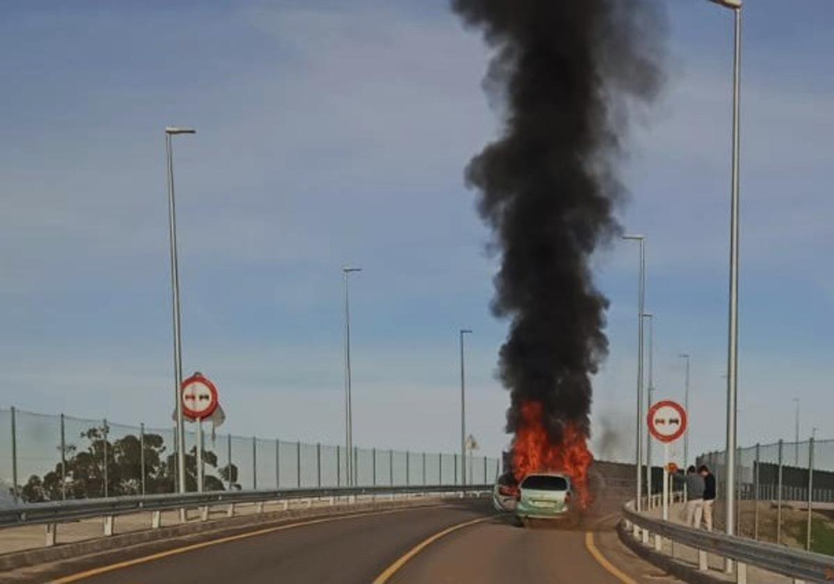 Un vehículo sale ardiendo en la carretera Nacional V