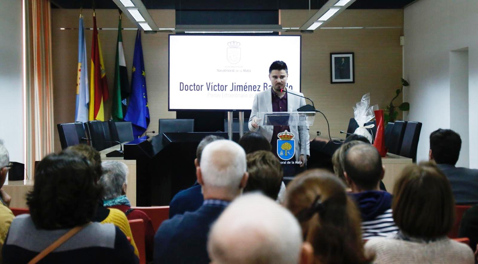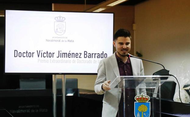 El salón de plenos acogió el jueves un acto poco habitual: el reconocimiento a un joven moralo nombrado recientemente Premio Extraordinario de Doctorado por la Universidad de Extremadura por su tesis 'Urbanizaciones ilegales en Extremadura. La proliferación de viviendas en el SNU durante el periodo democrático'. Se trata de Víctor Jiménez Barrado.