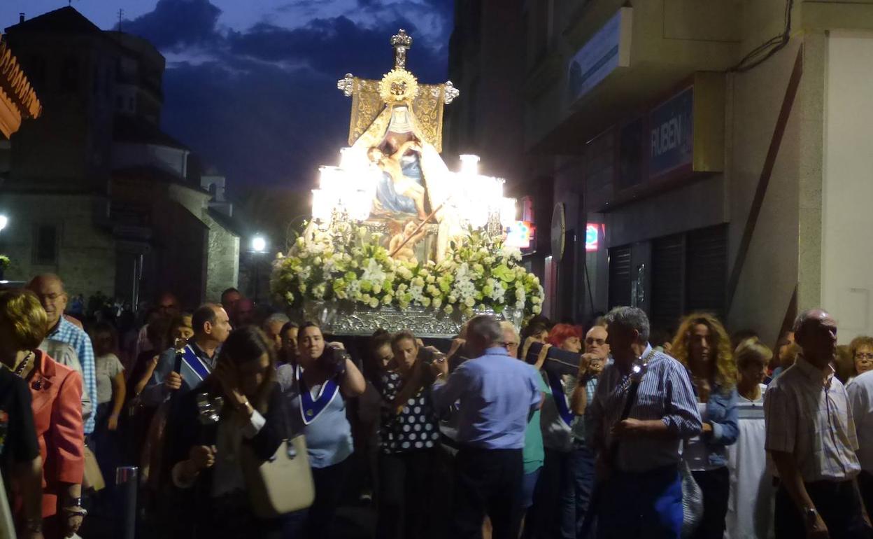 Una solemne procesión, para devolver la imagen de la virgen de las Angustias a su ermita, cerró en la noche del domingo las fiestas que se han celebrado en los últimos días en Navalmoral en honor a su patrona. Estuvo acompañada por los estandartes de las cofradías locales, la Banda de Música y numerosos fieles.