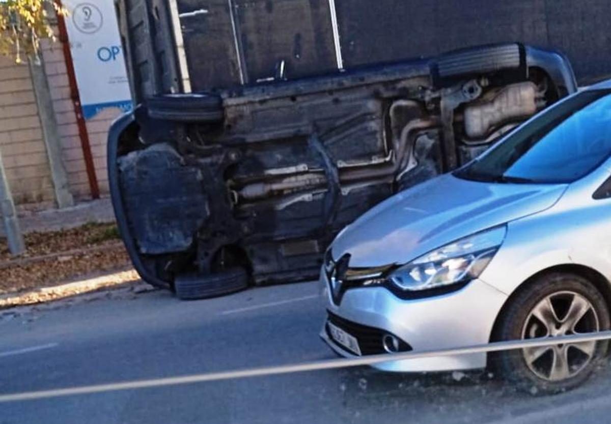 A pesar de lo llamativo de la fotografía por la posición en la que se encuentra, los ocupantes del vehículo que aparece en la misma tras volcar en la mañana del miércoles no resultaron heridos de gravedad, cuando las consecuencias, a la vista de la imagen, podían haber sido mucho peores.