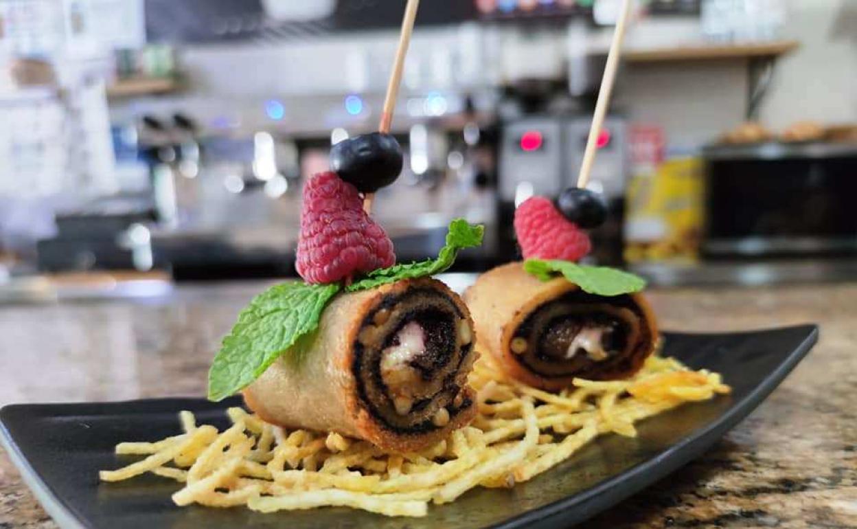 El precio de la tapa es de 2 euros y en la mayoría de los casos, como se dijo en la presentación, están muy elaboradas. Un ejemplo lo encontramos en el bar-cafetería Los Robles: rollito de morcilla y cebolla caramelizada con corazón de queso y toque de frutos del bosque, sobre colchón de patatas paja.
